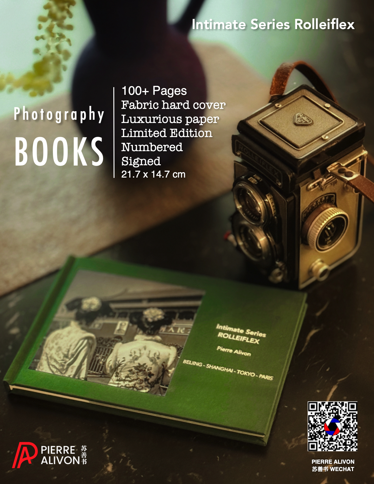 Ce livre est un carnet de voyage photographique, une invitation à une exploration sensorielle et contemplative à travers Pékin, Shanghai et Tokyo. Réalisé au Rolleiflex, il propose plus de cent images où chaque photographie devient une méditation sur le temps, l’espace et l’âme des villes traversées. Le format carré et la lenteur du geste photographique confèrent à ces images une intemporalité qui transcende les époques.